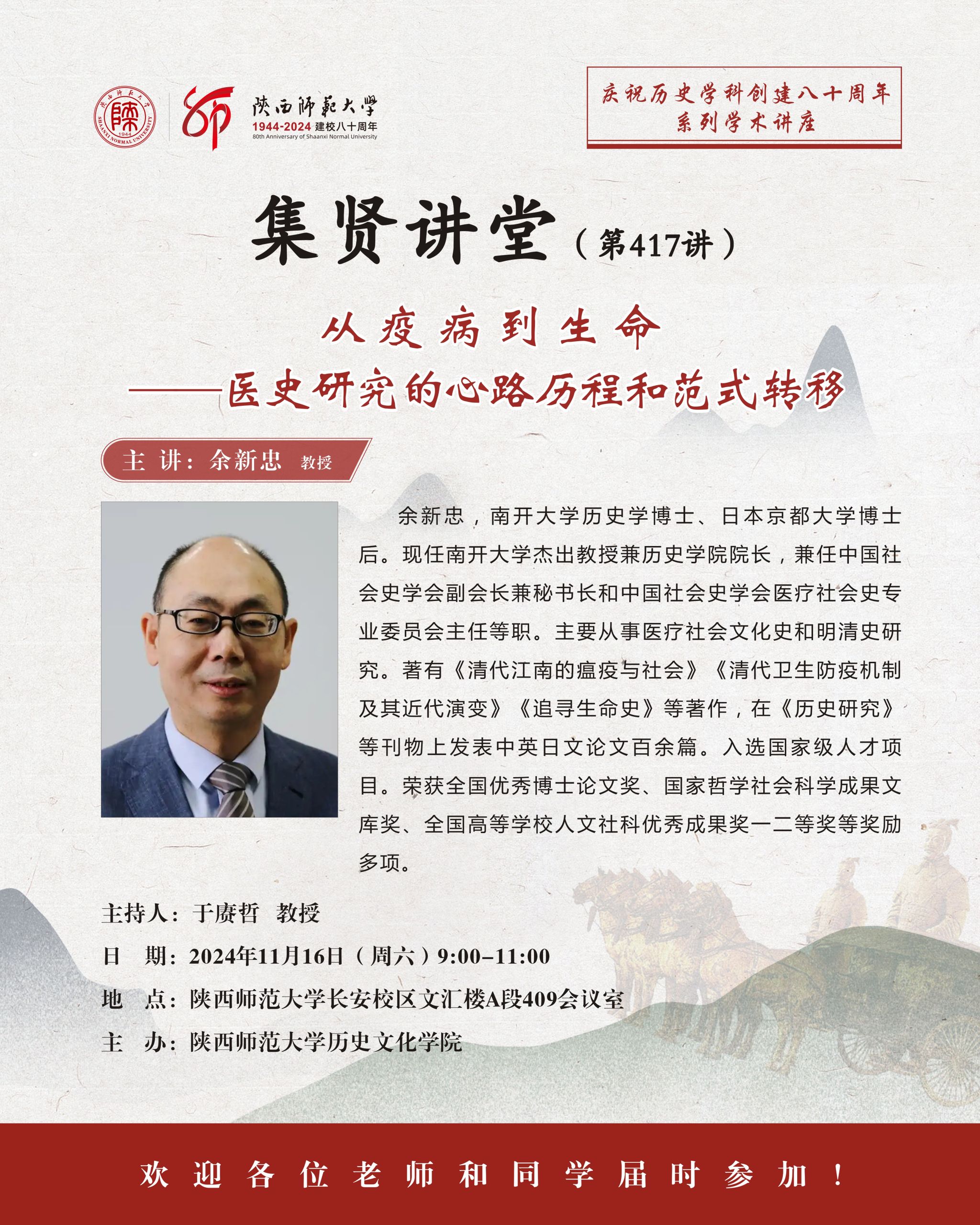 集贤讲堂第417讲:从疫病到生命——医史研究的心路历程和范式转移