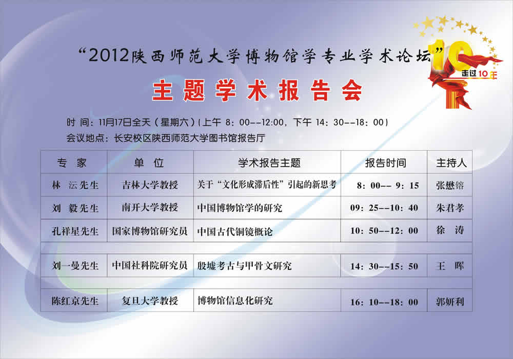 主题学术报告会“2012陕西师范大学博物馆学专业学术论坛”