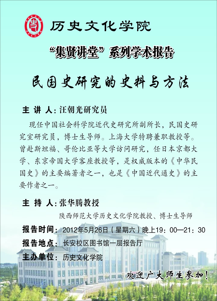 “集贤讲堂”系列学术报告预告:民国史研究的史料与方法