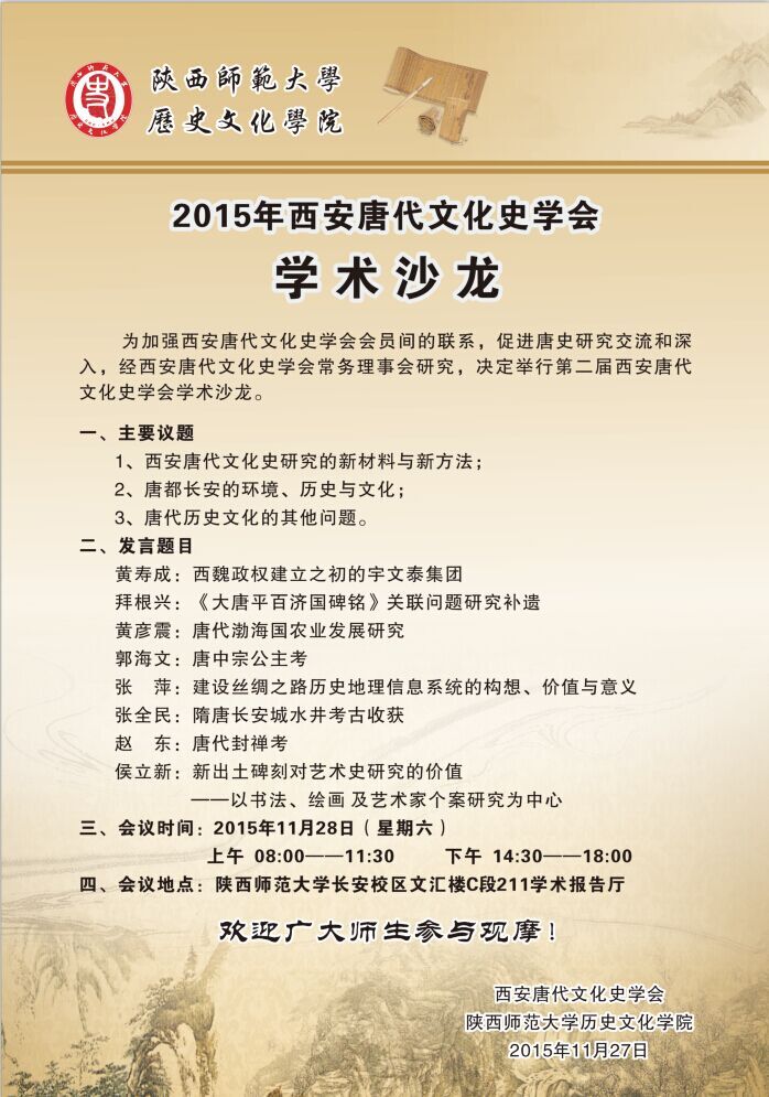 2015年西安唐代文化史学会学术沙龙预告