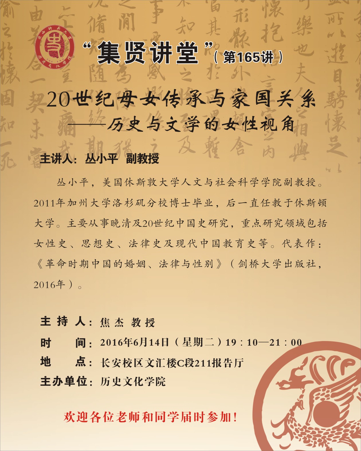 集贤讲堂第165讲:20世纪母女传承与家国关系——历史与文学的女性视角
