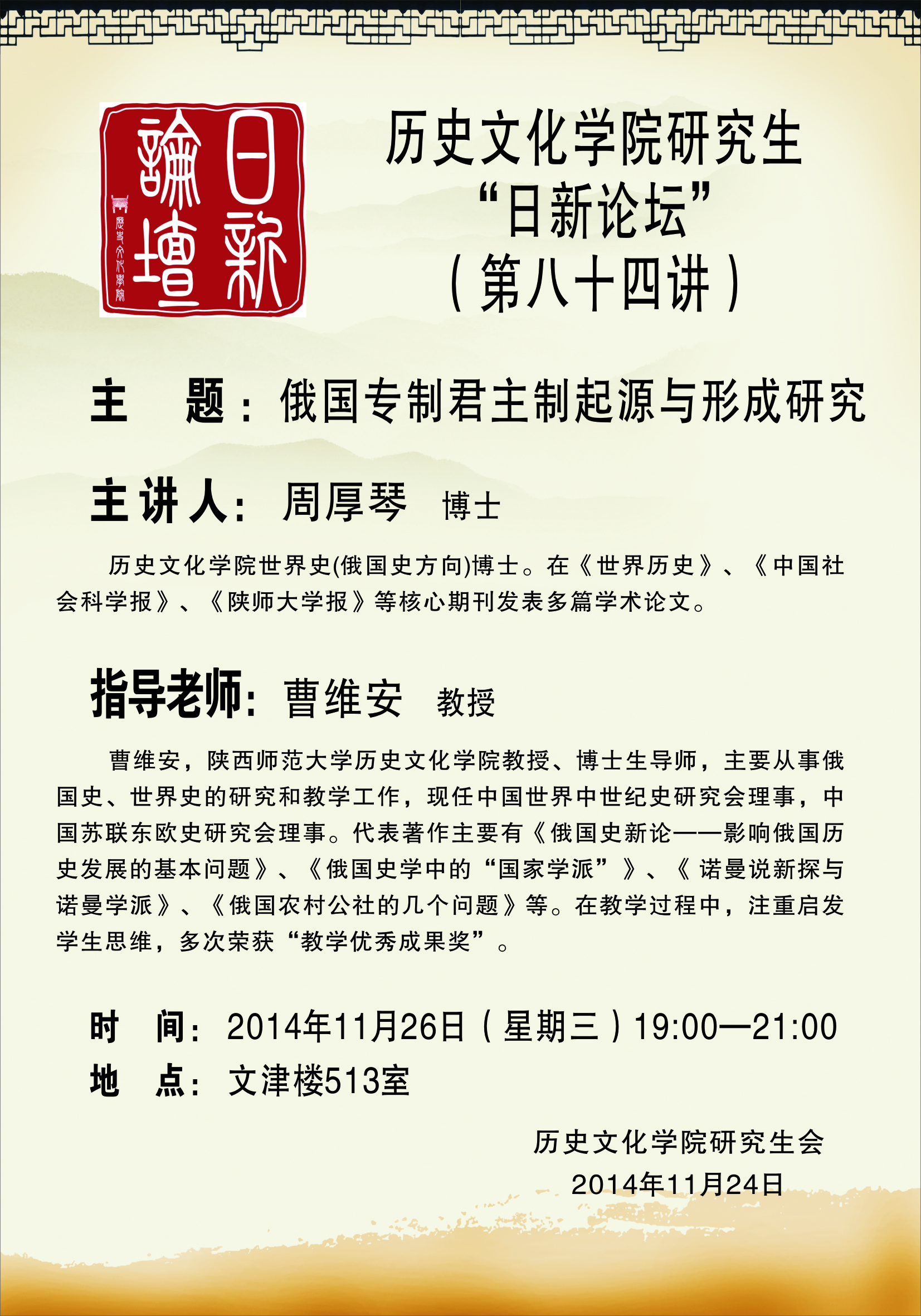研究生日新论坛84讲预告
