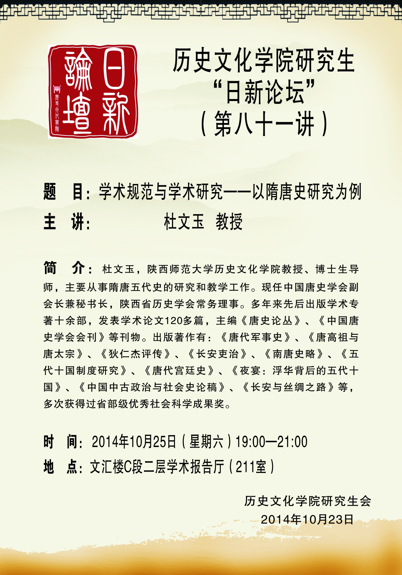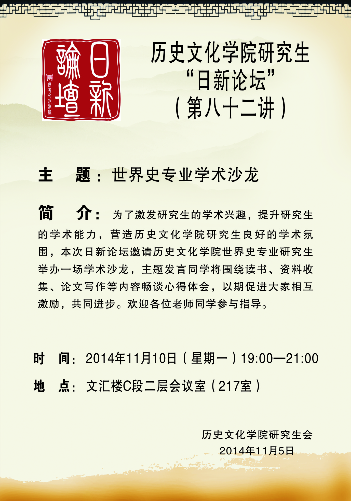 研究生日新论坛82讲预告(世界史硕士研究生学术沙龙)