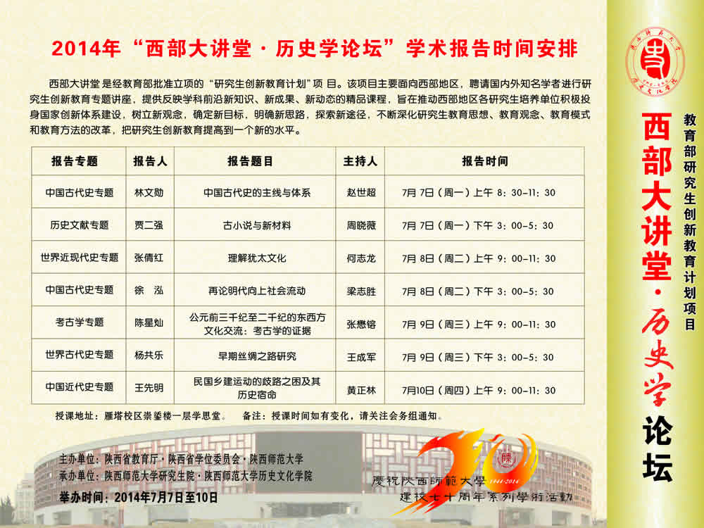 2014年“西部大讲堂?历史学论坛”学术报告时间安排