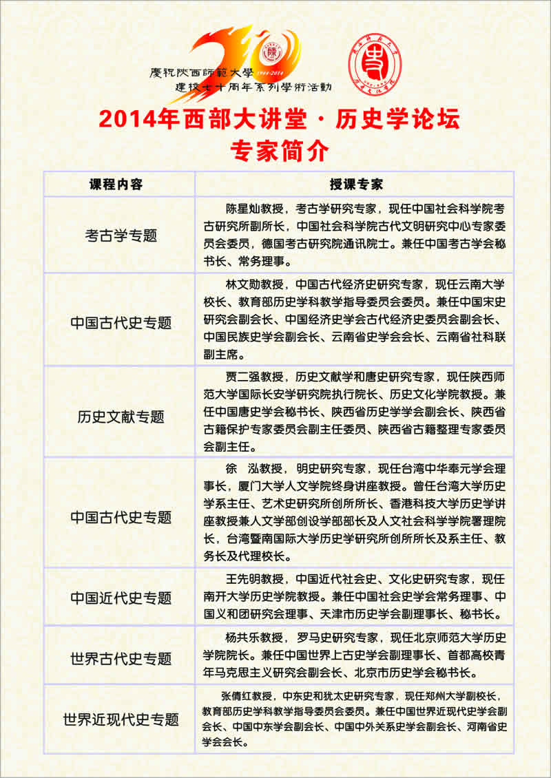 2014年西部大讲堂?历史学论坛专家简介