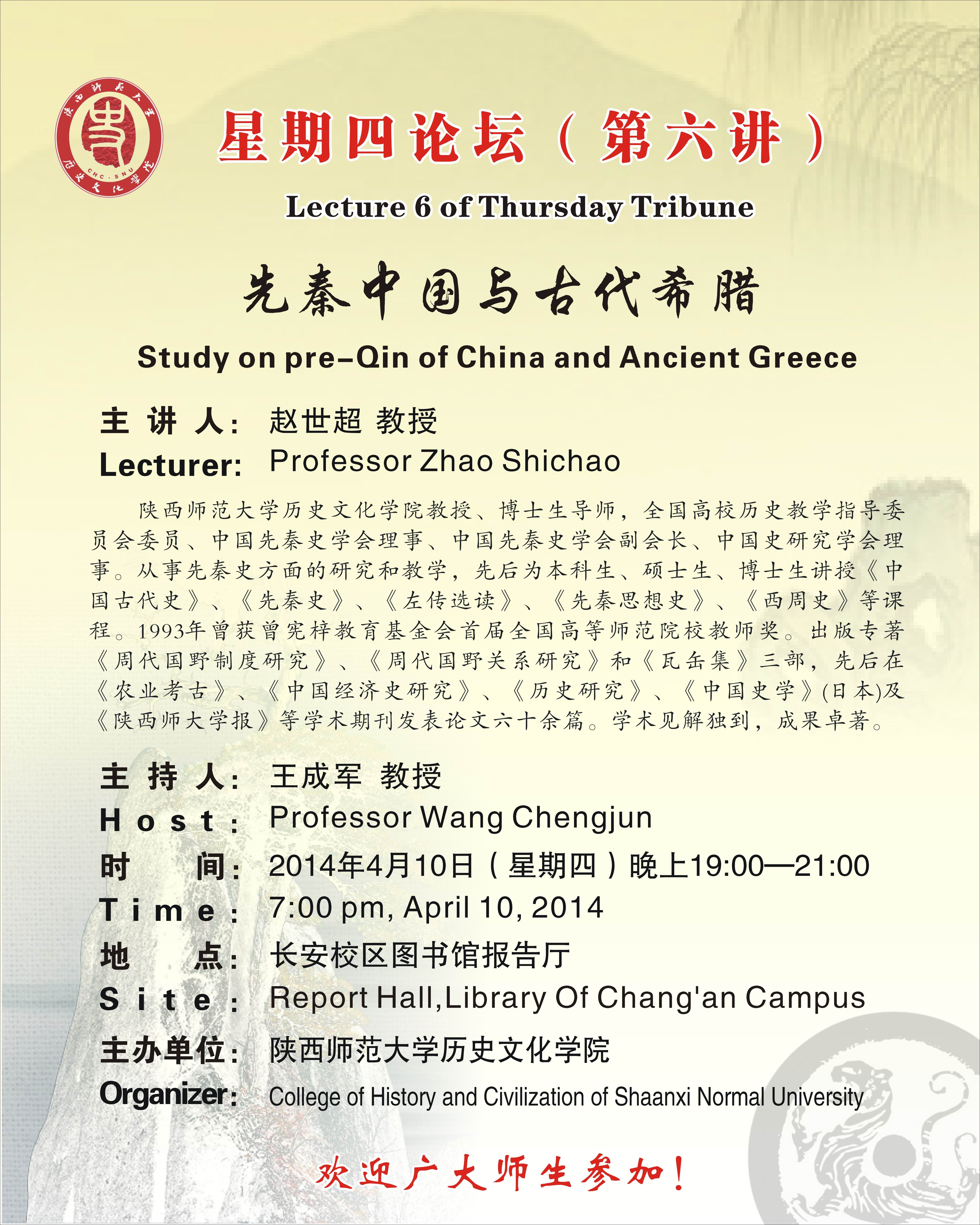 “星期四论坛”第六讲:先秦中国与古代希腊