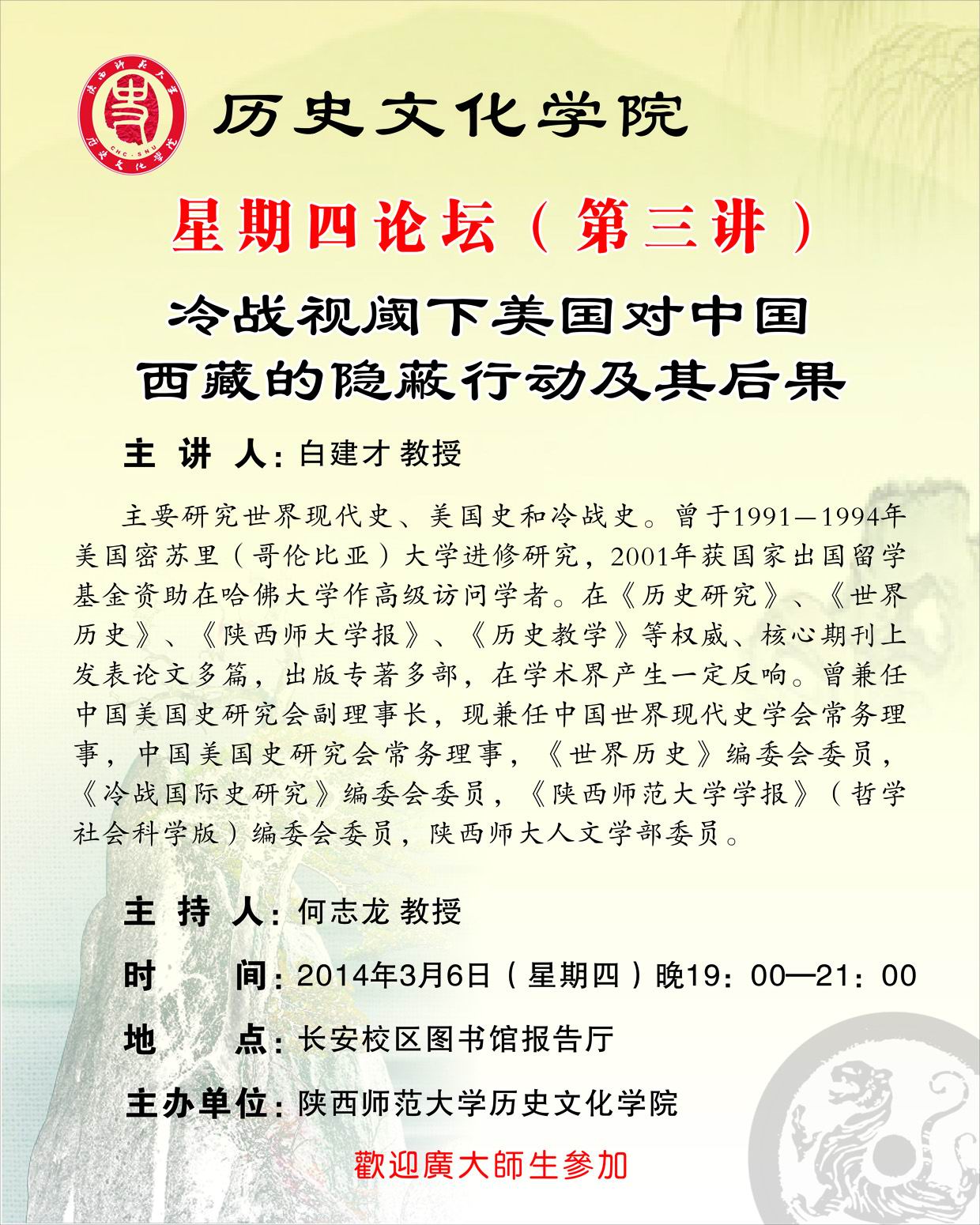 “星期四论坛”第三讲:冷战视阈下美国对中国西藏的隐蔽行动及其后果
