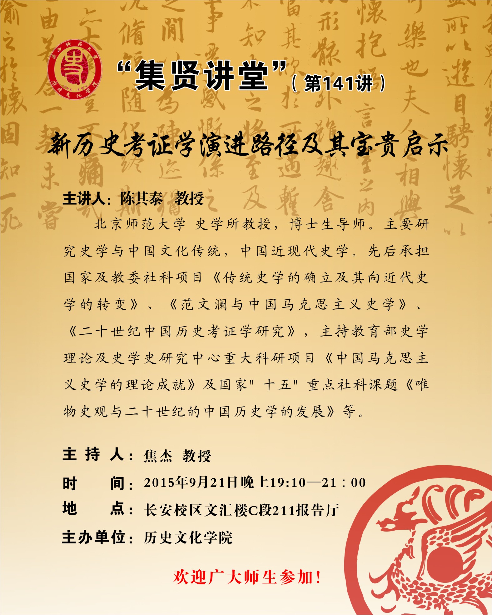 集贤讲堂第141讲:新历史考证学演进路径及其宝贵启示(陈其泰)