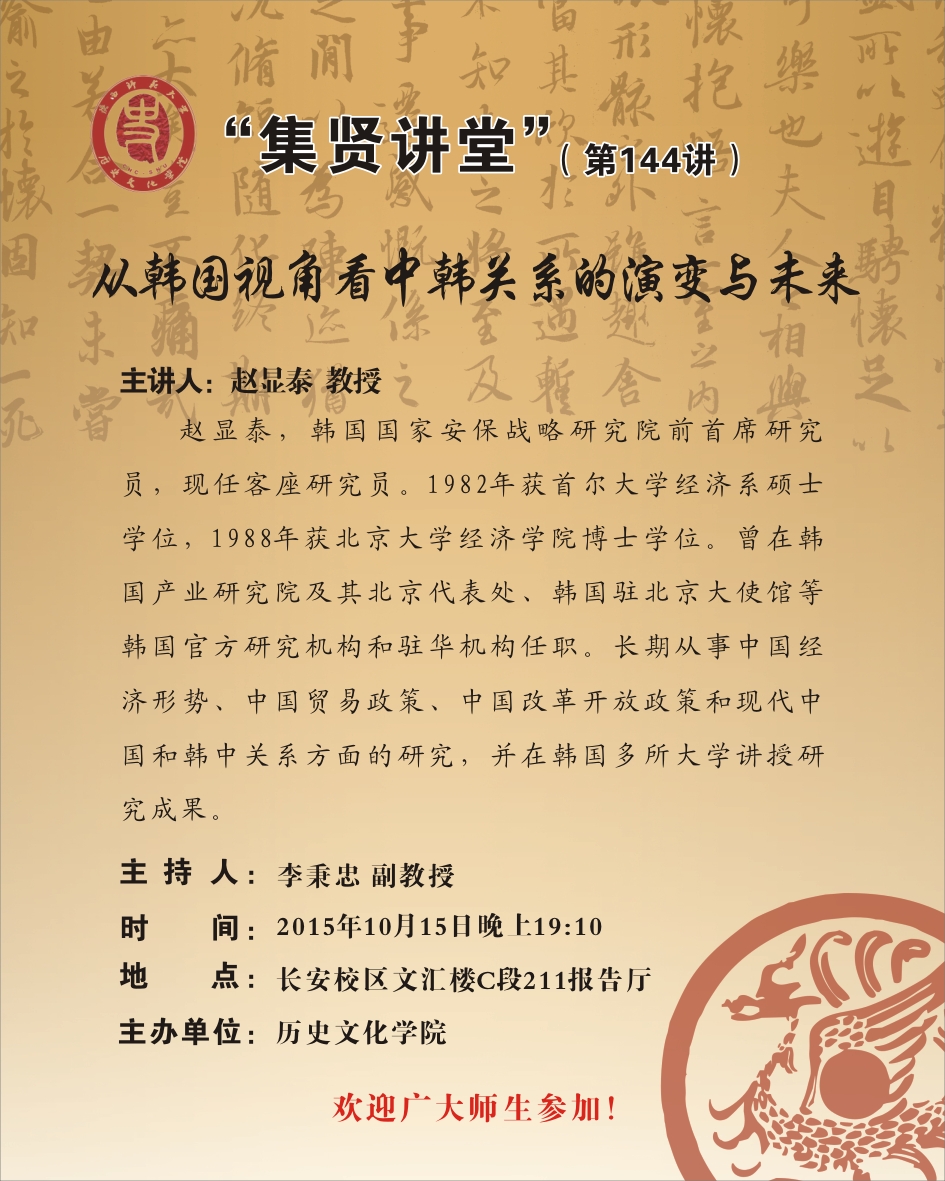 集贤讲堂第144讲:从韩国视角看中韩关系的演变与未来(赵显泰)