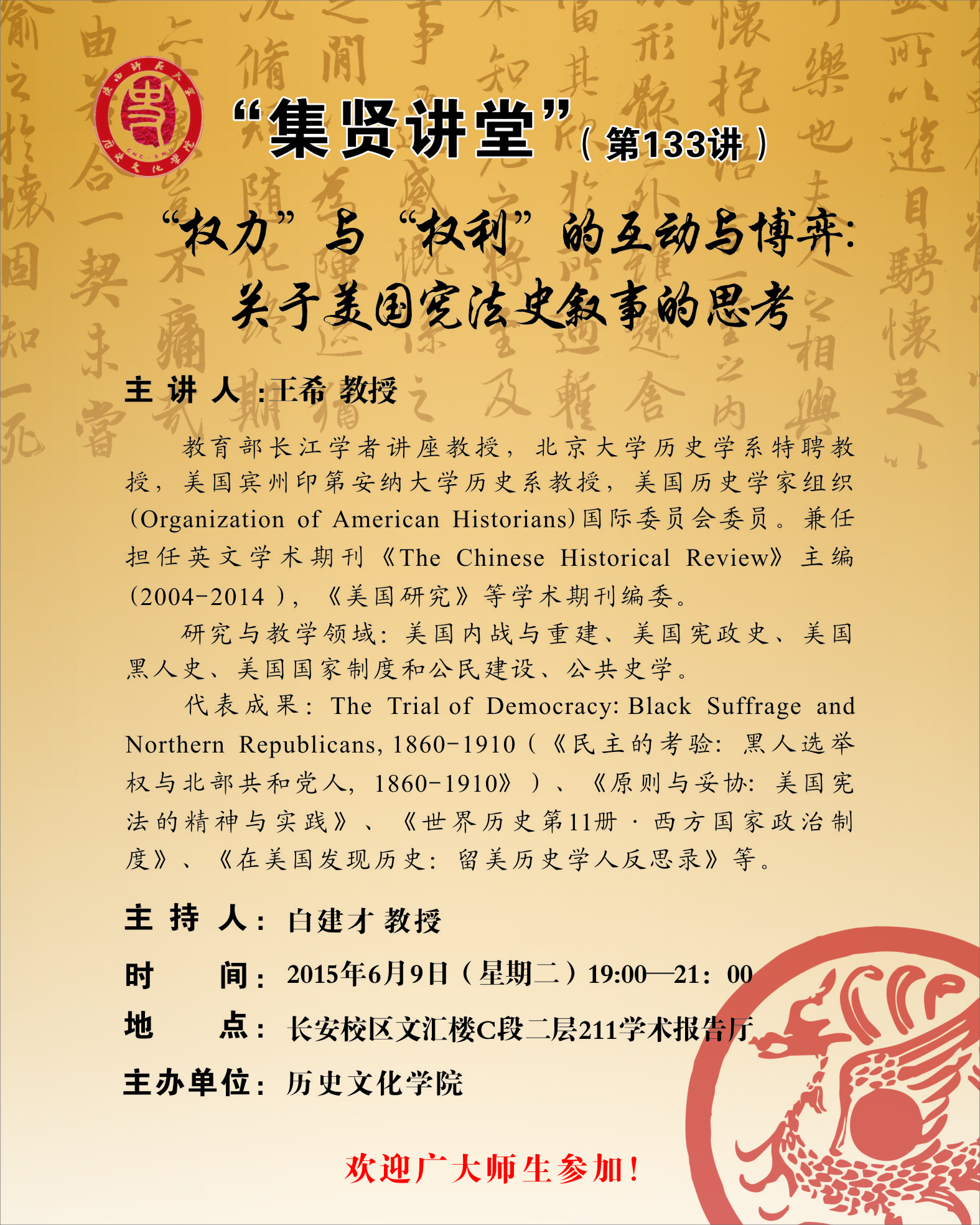 集贤讲堂第133讲:“权力”与“权利”的互动和博弈:关于美国宪法史叙事的思...