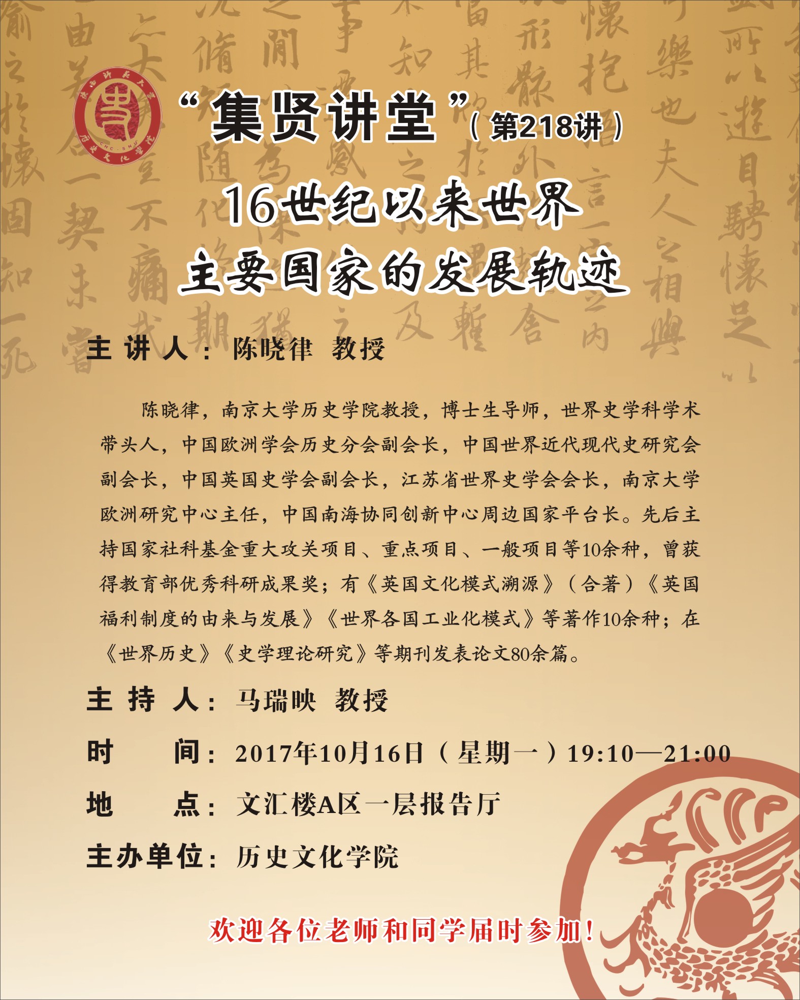 集贤讲堂218讲: 16世纪以来世界主要国家的发展轨迹
