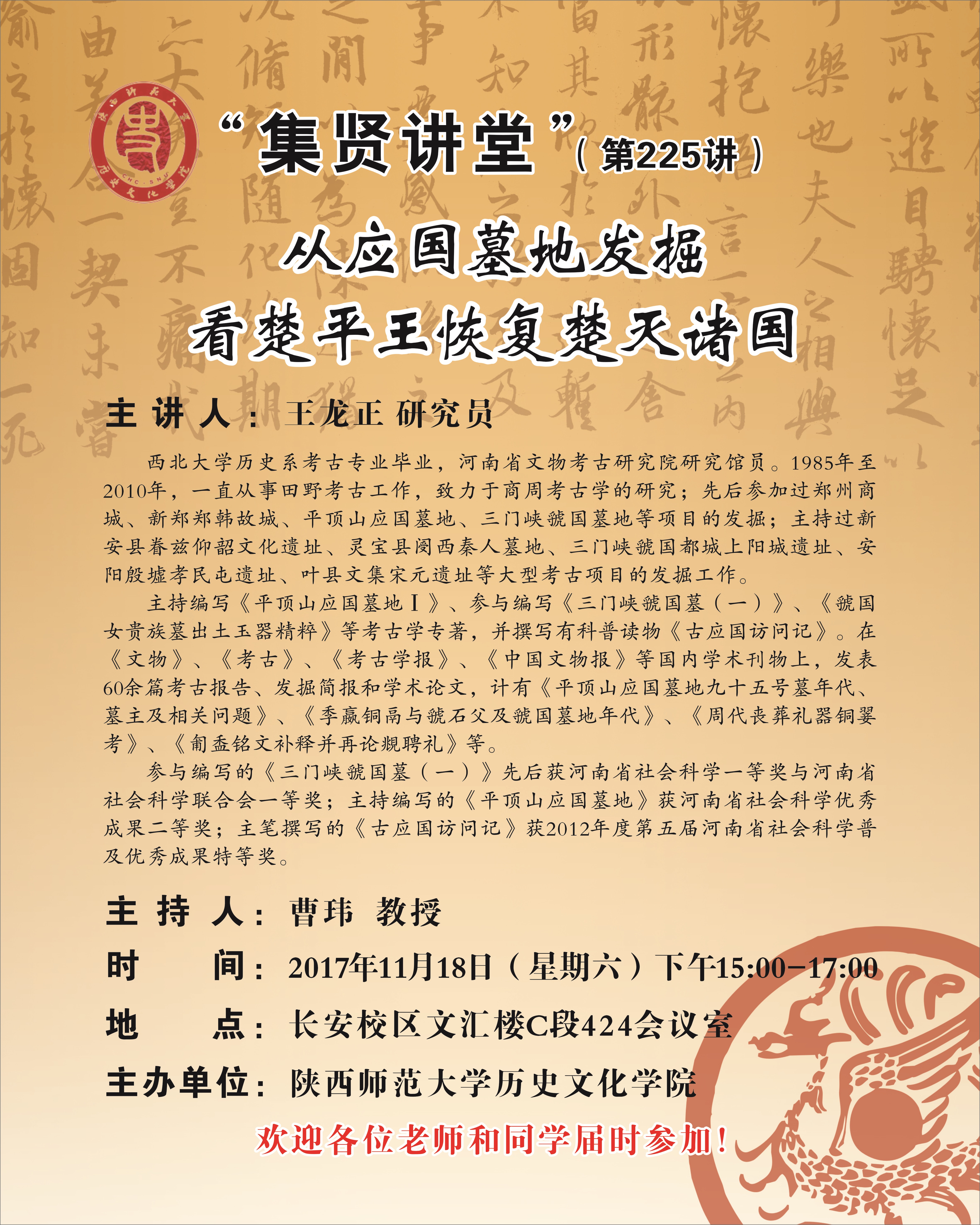 集贤讲堂第225讲:从应国墓地发掘看楚平王恢复楚灭诸国