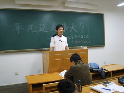 为响应学校、学院关于学习孟二冬同志先进事迹的号召,威廉williamhill体育05级2班于21日下午7时在文渊楼11423教室开展了孟二冬教授的学习讨论会。院学生会主席陆孔存出席了本次讨论会,并做了发言。 首先宣传委员带领大家学...