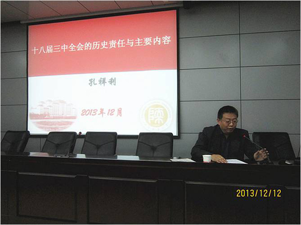 为加强学院学生党员对十八届三中全会精神的学习,近日,威廉williamhill体育党委在图书馆报告厅组织举办以“十八届三中全会的历史责任与主要内容”为主题的讲座,报告由校党委宣传部部长孔祥利教授作为主讲人。学院党委副书...