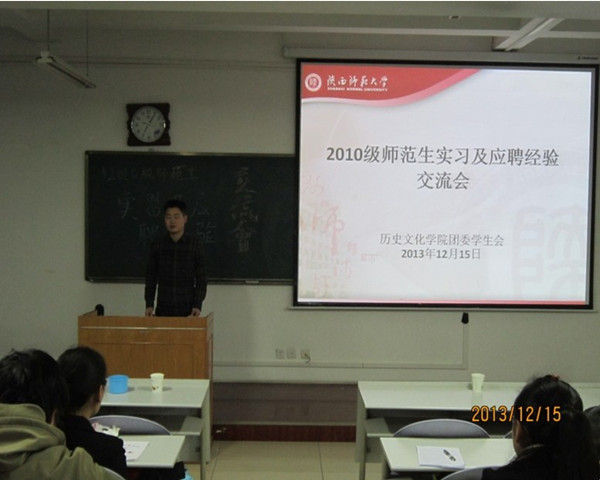 12月15日晚七点至九点,由我院学生会主办的免费师范生交流会在文津楼410教室圆满成功。 活动分为两个环节,第一环节由2011级辅导员张志祥老师做开场白,之后主持人对五位2010级学长学姐的实...