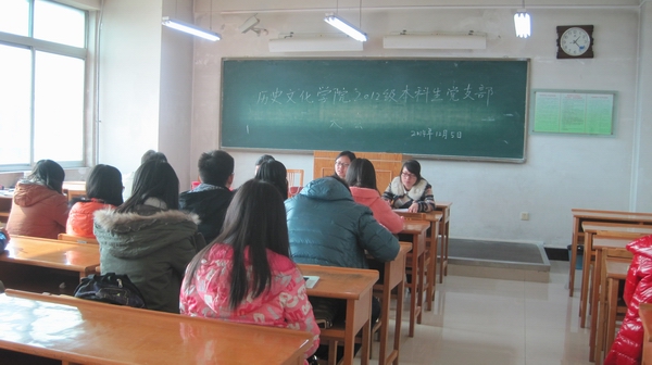 2014年12月4日19:00,2011级本科生学生党支部在文渊楼四楼421教室召开支部讨论大会。会议内容主题讨论王若琛、李玉芹等两名同志由中共预备党员转为正式党员,并接收穆仁萱等6名同志为中共预备党员。会议由支部书记洪...