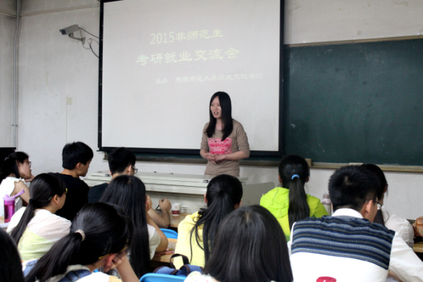 5月17日晚7时,2015非师范生考研就业交流会于文渊楼411教室召开。学院辅导员刘洁婷老师、11级优秀毕业生以及12级全体非师范生参加了本次交流会。会议由12级古典文献班长师瑞青和博物馆班长法丽萍共同主持。 交流会开...