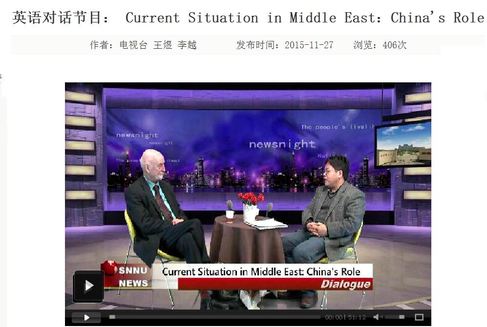 11月27日,学校电视台英语节目——Dialogue(《对话》)发布国际知名中东问题专家、英国埃克塞特大学“阿拉伯伊斯兰文明研究中心”资深教授、我院特聘教授Tim Niblock与我院副院长李秉忠副教授的专题对话——Current...
