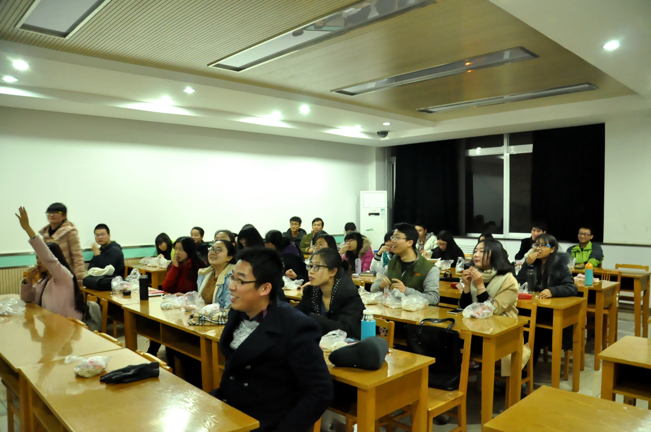 2015年12月20日晚7点,2013级历史学一班在文津楼502教室开展了团日活动,2013级辅导员王亮、历史一班团支书胡敏及历史一班同学参加了此次活动。 主持人宣布活动开始,首先进行了有奖问答的环节,同学们积极回答问题,...
