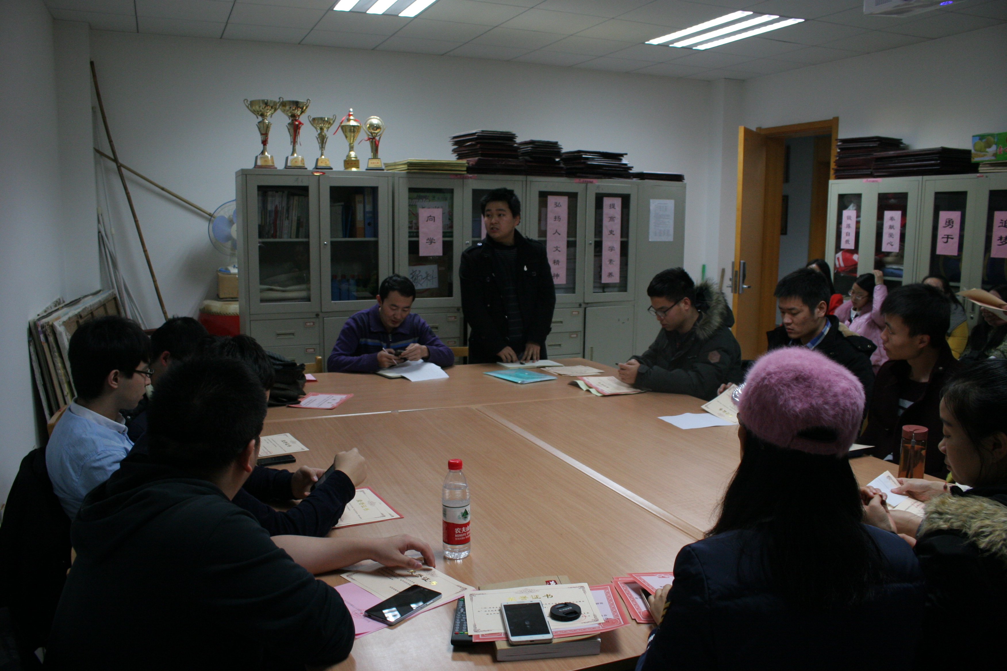 2015年12月30日晚7:00,我院第十届研究生会在文汇楼C段201办公室举行学期总结大会,团委书记柴永昌、研会主席团、各部门部长及部员出席本次会议。 本次会议共有四项议程。首先由研会主席魏兴总结本学期研会主要工作。...