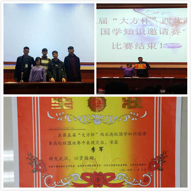 11月4日,第五届“大方杯”西北高校国学知识邀请赛决赛在兰州大学举办,来自西北地区的21所高校国学社代表队参加了此次决赛。由我校威廉williamhill体育指导的国学社代表队在决赛中表现优异,取得第三名佳绩。 &n...