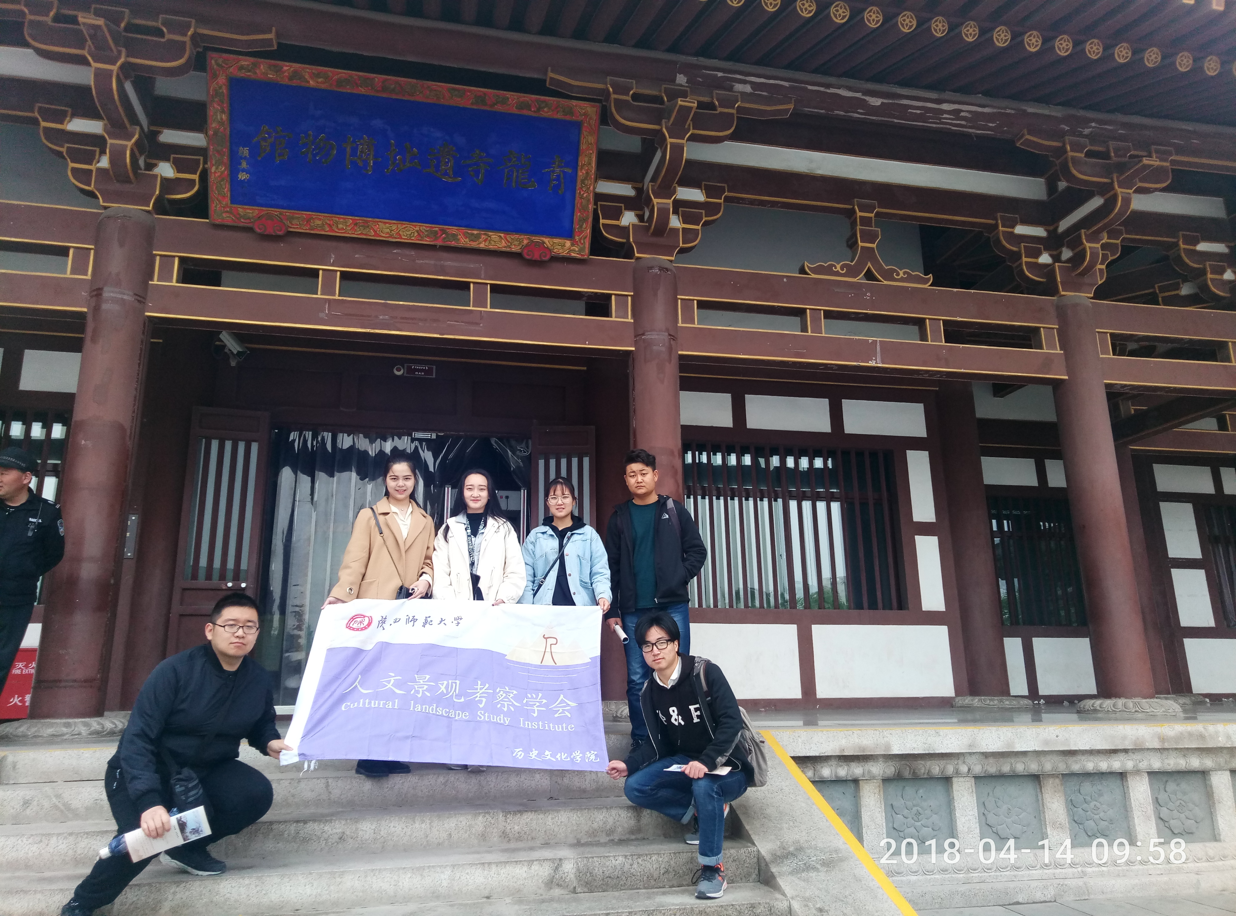 2018年4月14日上午8:50,由7人组成的考察团在社团主席李升韬的带领下,分别从新校区乘坐公交前往考察交流目的地——青龙寺。经过1个小时的车程,所有成员安全到达。下车清点完人数后,步行至青龙寺门口,并在青龙寺山...