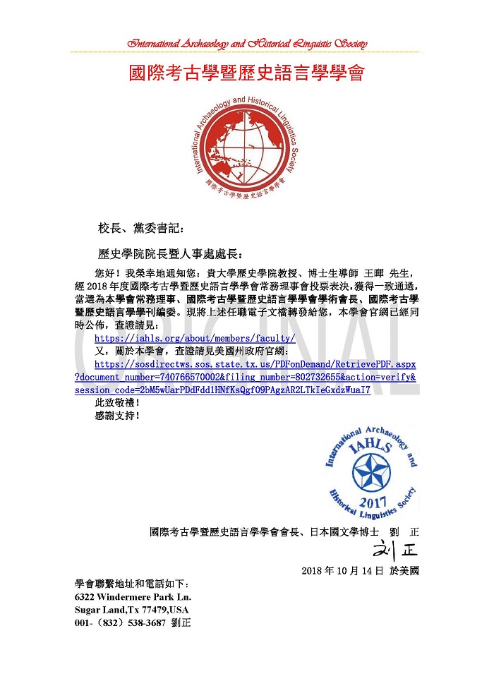 我院王晖教授荣任国际考古学暨历史语言学学会常务理事、学术会长 编发:学院办公室 据国际考古学暨历史语言学学会官网及美国州政府官网2018年10月14日通讯报道,国际考古学暨历史语言学学会常务理事会投票...