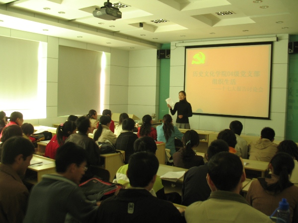 11月9日上午,我院2004级党支部在学院多媒体教室召开座谈会认真学习十七大精神,所有党员、预备党员准时参加,座谈会由支部书记梁丽老师主持。 大家一起观看了十七大实录,聆听了胡锦涛总书记题为《高举中国特色社会...