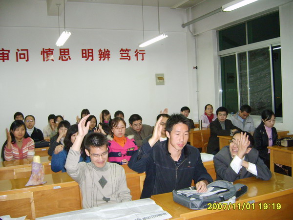 2007年11月1日晚,我院06级研究生支部在11623教室召开了支部会议。 此次会议共包括两项大的议程。第一项议程是表决通过了接收杨蓉等六位同学为预备党员的决议。第二项是学习胡锦涛书记在中国共产党第十七次全...