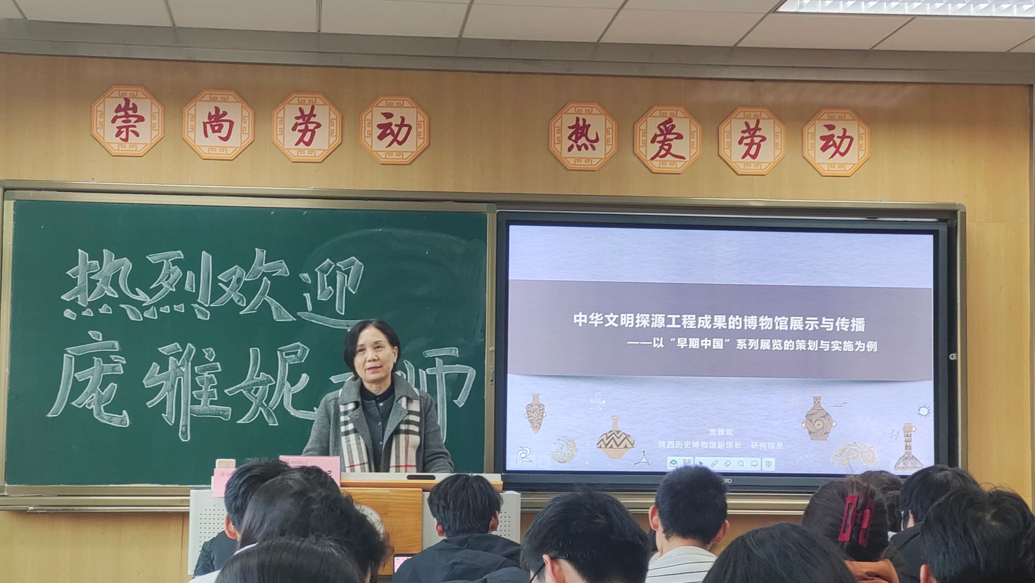 (通讯员:王子谞)12月27日下午,庆祝历史学科创建八十周年系列学术讲座暨集贤讲堂第424讲在长安校区文渊楼1313教室举行。应学院邀请,陕西历史博物馆庞雅妮副馆长应邀来访我院并作了题为“中华文明探源工程成果的博物馆展示与传播——以“早期中国”系列展览的策划与实施为例”的专题讲座。学院考古文博方向研究生、本科生参加了本次活动。讲座由杨瑾教授主持。讲座伊始,庞雅妮副馆长就为介绍了“早期中国”系列展览的总体情况。...