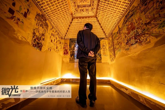 4月18日,陕西网刊发文章《微光丨敦煌月照长安路——沙武田与千年壁画的对话人生》,讲述我院教授沙武田与千年壁画的对话人生。全文如下: 四月的陕西师范大学长安校区正浸在春光的温柔里。从北门步入,图书馆如一卷展开的典籍矗立眼前,玻璃幕墙上浮动着云絮的倒影。前往文汇楼的道路两旁,花开正好,绿意正浓。而千里之外的甘肃敦煌,此刻该是另一番景象。鸣沙山脊线被阳光染成金箔,莫高窟檐角的铁马在风中叮咚作响,沉睡千年的飞天正欲挣脱斑驳的泥层,...