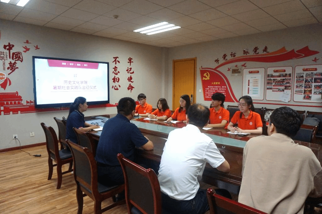 为深入学习领会习近平总书记在庆祝中国共产党成立100周年大会上的重要讲话精神,从亲身实践中感知中国共产党团结带领全国各族人民在革命、建设、改革时期所取得的伟大成就、创造的伟大精神,并积极响应校团委对暑期社会实践的工作部署,7月19日上午10时,威廉williamhill体育在文汇楼C段217会议室举行2021年暑期社会实践骨干团队出征仪式,威廉williamhill体育行政副院长李晨子、团委书记洪海安出席仪式,学院本科生专兼职辅导员刘旭辉、师瑞青、靳雅娜和团队成员参加会议。