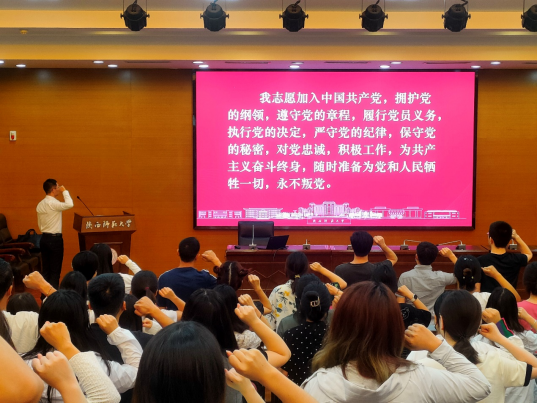 毕业生党员代表吴小龙带领全体党员同志重温了入党誓词。入党誓词指引着毕业生党员们叩问初心、守护初心,激发他们积极参与毕业生党员相关活动的热情以及坚守使命、担当使命的责任感。