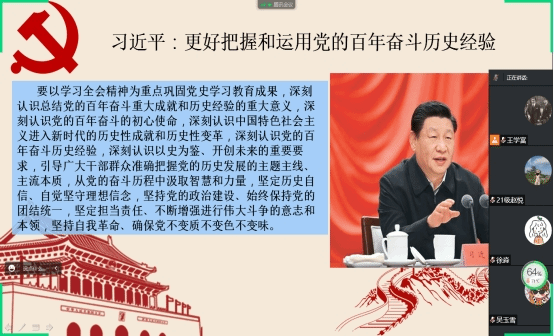 会议的第一个学习内容是学习《求是》杂志发表的习近平总书记重要讲话《更好把握和运用党的百年奋斗历史经验》。习近平总书记的讲话指出,党员同志要以学习全会精神为重点巩固党史学习教育成果,深刻认识总结党的百年奋斗重大成就和历史经验的重大意义,深刻认识党的百年奋斗的初心使命,深刻认识中国特色社会主义进入新时代的历史性成就和历史性变革,深刻认识党的百年奋斗历史经验,深刻认识以史为鉴、开创未来的重要要求,引导广大干部群众准确把握党的历史发展的主题主线、主流本质,从党的奋斗历程中汲取智慧和力量,坚定历史自信、自觉坚守理想信念,坚持党的政治建设、始终保持党的团结统一,坚定担当责任、不断增强进行伟大斗争的意志和本领。在学习过程中,支部党员认真学习讲话内容,领悟伟大思想。