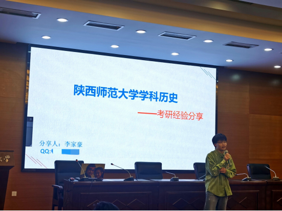 随后,2021级历史学科教学专业的李家豪和王鑫分享了自己在选择考研学校方面的心得体会。他们以自己择校的实际经验为例,向大家讲述了关于考研复习的规划与建议。他们建议同学们提前明确自己的考研学校与专业,并对意向的专业进行重点学习,同时希望同学们在考研中要学会调节自己的心态。