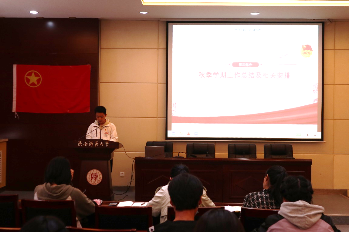 团委组织部部长朱子航从“坚定理想信念”“加强组织建设”“推动实践育人”三个方面简要总结了我院团委上学期的工作成果,汇报“青春逢盛世 奋进新征程”精品团日大赛评选结果,对各位团支书提出提升自身理论素养、提高团学工作能力、丰富团学活动形式、加强对团员青年的思想引领的期望和要求。