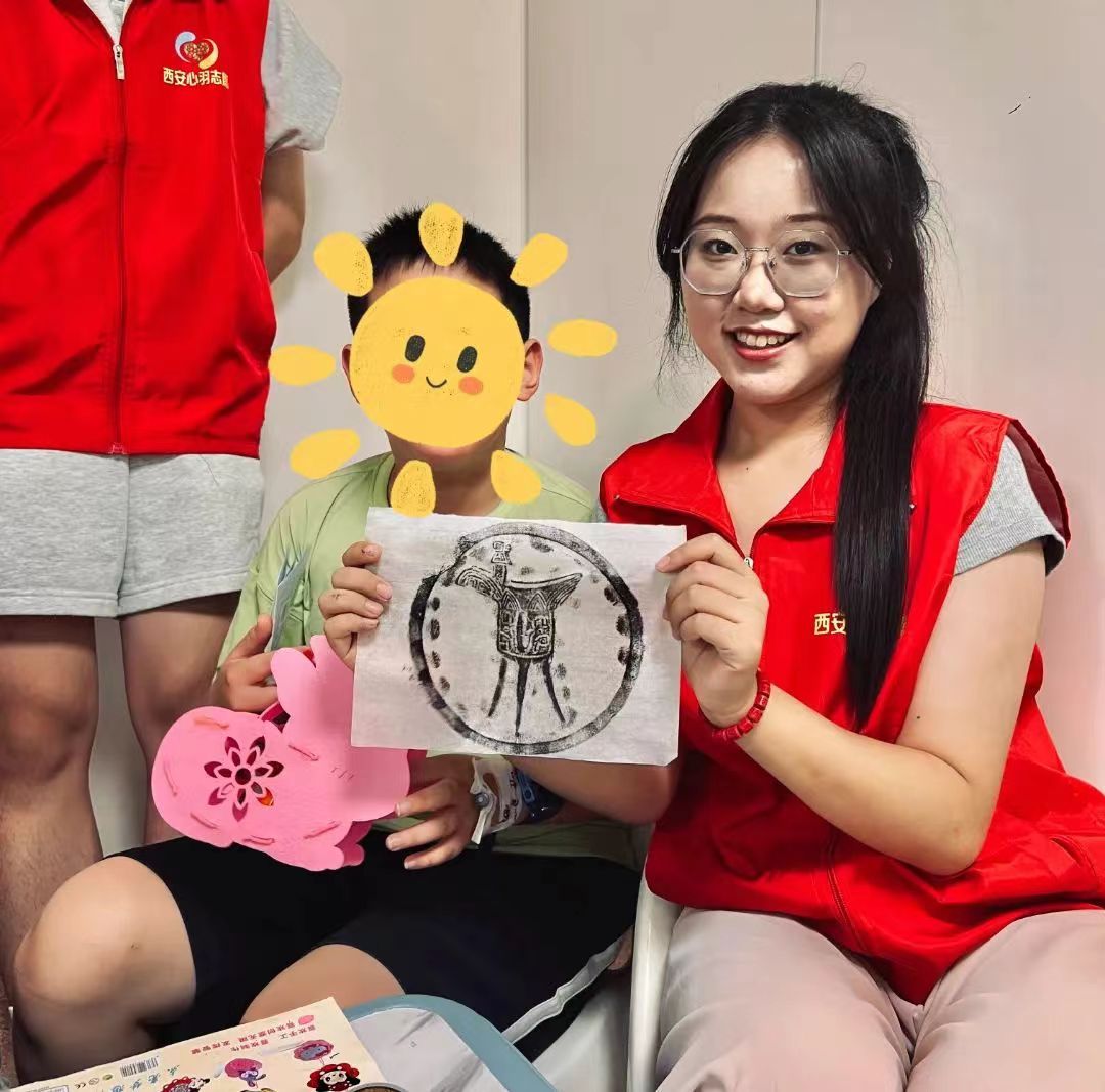 9月23日,青年志愿者协会团支部开展“宣传瓦当拓印 共度中秋佳节”主题团日活动。青年志愿者协会团支部成员前往西安市儿童医院,向住院治疗的孩子们介绍瓦当拓印的文化内涵与制作流程,并辅助孩子们制作出属于自己的拓印作品,不仅让孩子们感受到中国文化的博大精深,更使他们感受到节日的氛围和社会的关怀,在学习和体验中领略中华传统文化的魅力。