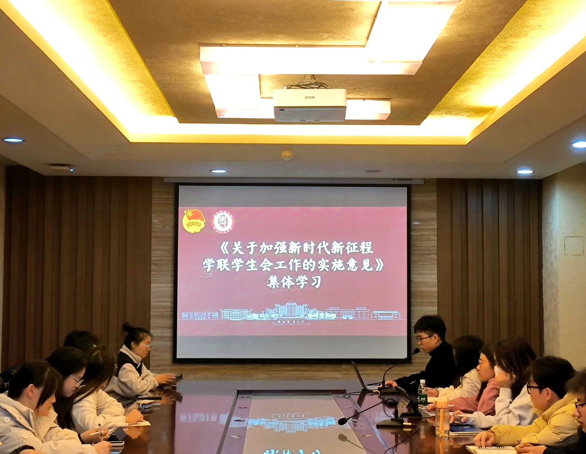 会议伊始,谢志豪带领威廉williamhill体育团委、学生会全体学工干部集体学习了《关于加强新时代新征程学联学生会工作的实施意见》,要求各部门负责人胸怀崇高理想,恪守学生本分,牢记“全心全意服务同学”宗旨,以更高的标准要求自己,守纪律、讲原则、作表率,在学习生活中发挥模范带头作用,塑造对党忠诚、理想远大、根植同学、服务同学、清新阳光的形象的组织形象。