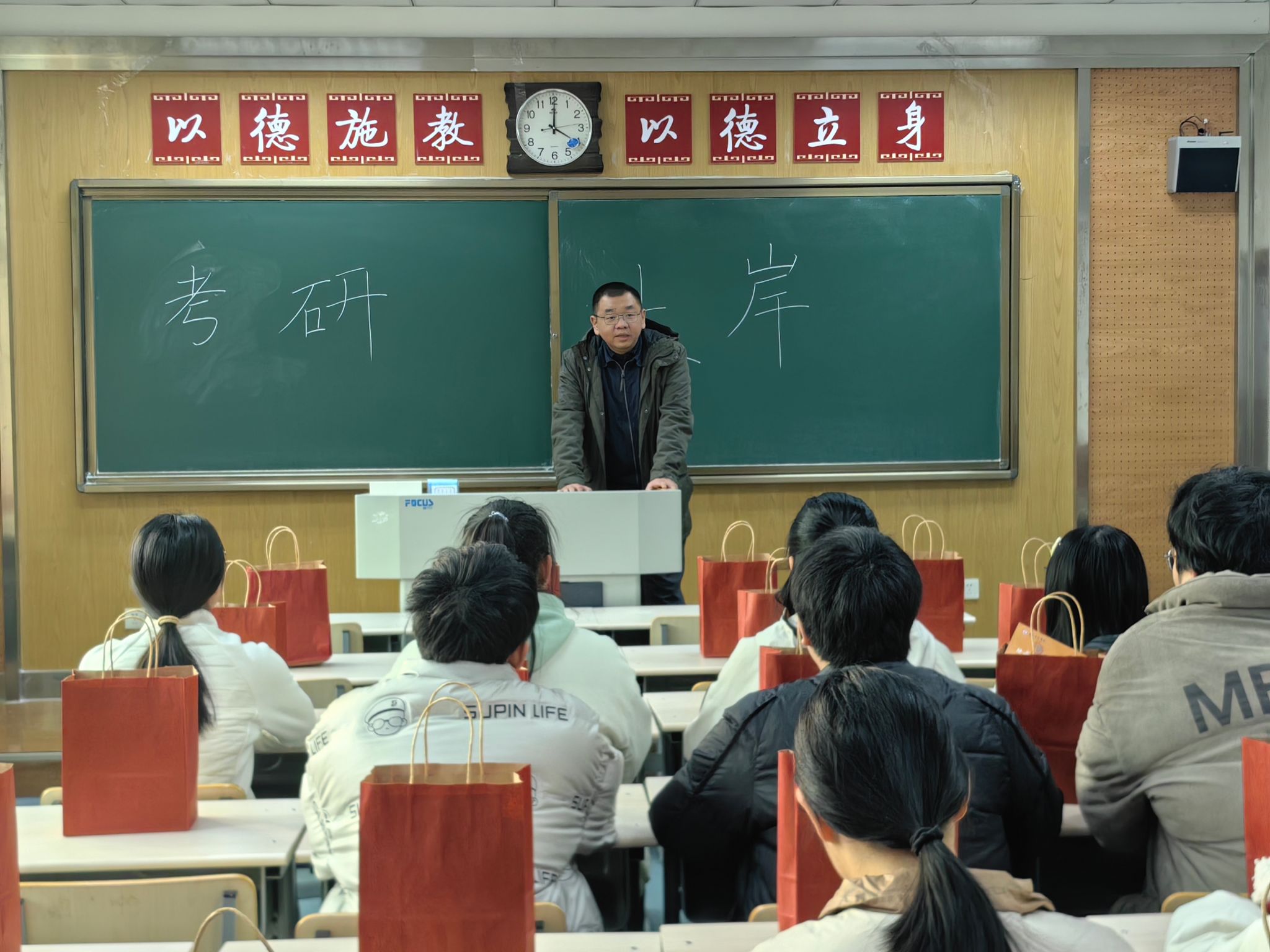 孙伟书记向全体考研同学表达了深切的关怀与期望,结合往年情况分析了今年的考研形势,寄语同学们在进入考研倒计时的日子里积极调整状态,规律作息饮食,注重劳逸结合,以坚定的信心迎接考试,努力实现学业抱负,向着更高的人生目标前进。