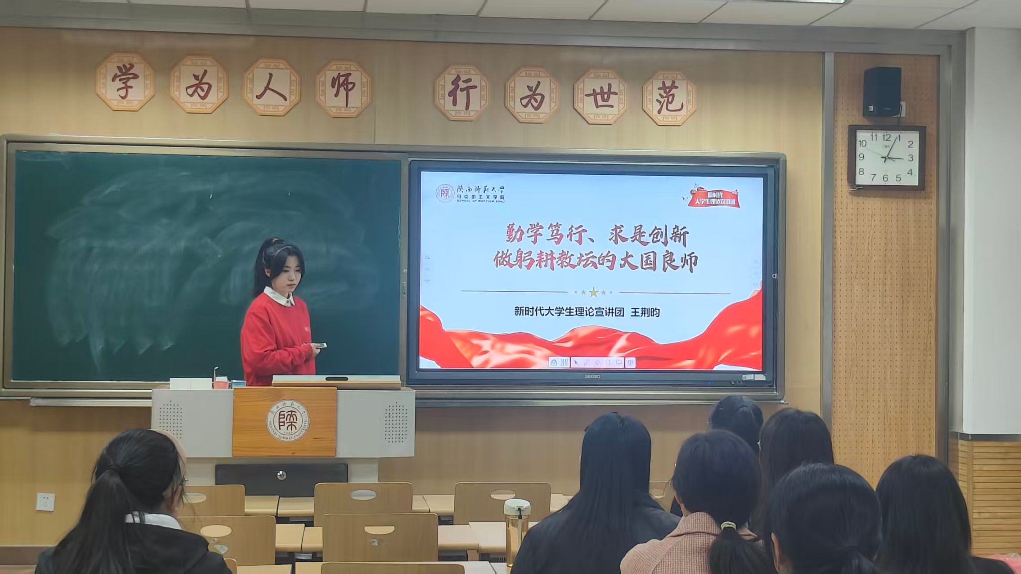 活动伊始,马克思主义学院新时代大学生理论宣讲团王荆昀同学围绕“教育家精神”进行了深入宣讲,阐释了新时代教育者的使命担当。接着,威廉williamhill体育“史原星火”大学生理论宣讲团孙佳怡同学聚焦《可爱的中国》,深情讲述从方志敏烈士笔下的理想愿景到当今时代“可爱的中国”的生动实践与精神传承。