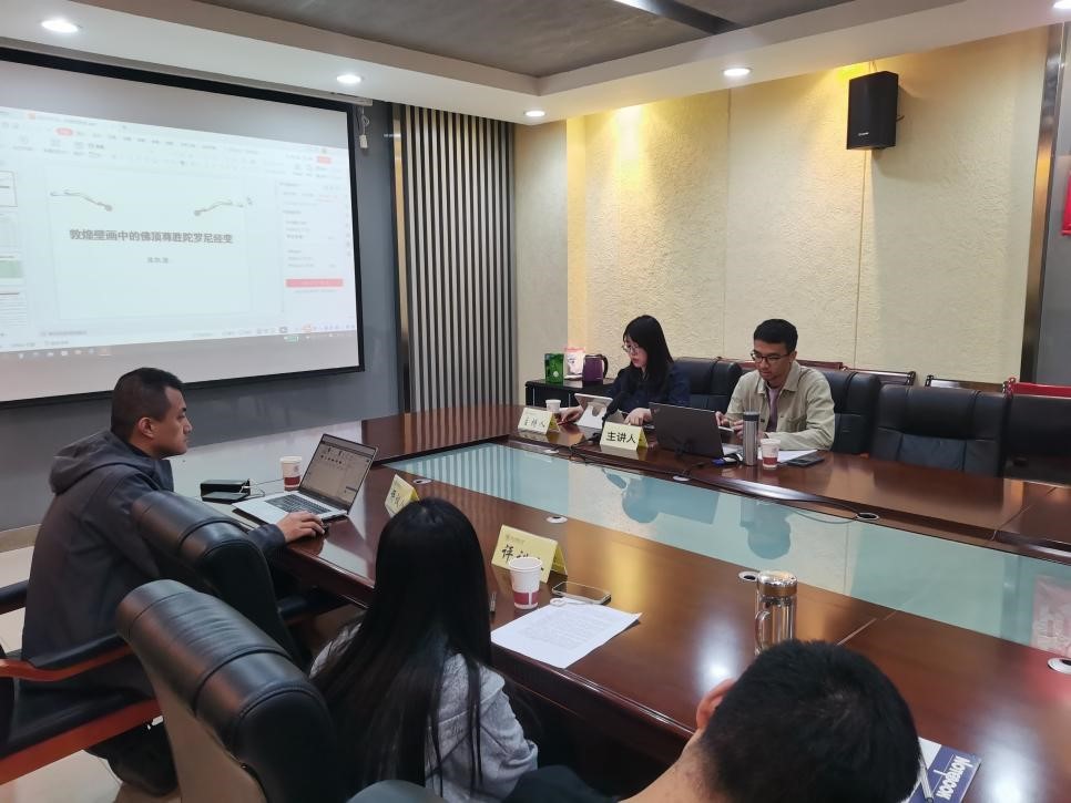 2023年5月13日晚,我院研究生“日新论坛”第一百七十一讲在长安校区文汇楼C段424会议室举办。本次论坛讲座目为《敦煌壁画中的佛顶尊胜陀罗尼经变》,主讲人为22021级博士研究生陈凯源,我院魏健鹏老师及2020级博士研究生吴雪梅对其进行评议。论坛由研究生会学术部干事姚云琳主持。