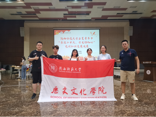 2022年6月28日下午,陕西师范大学第五届启夏青年节“喜迎二十大,学史悟初心”党团知识竞赛决赛在长安校区新勇活动中心多功能厅举办,我院2021级研究生张泰、2020级西北院研究生薛晓晓、2020级本科生唐旖萌组成代表队参加决赛。