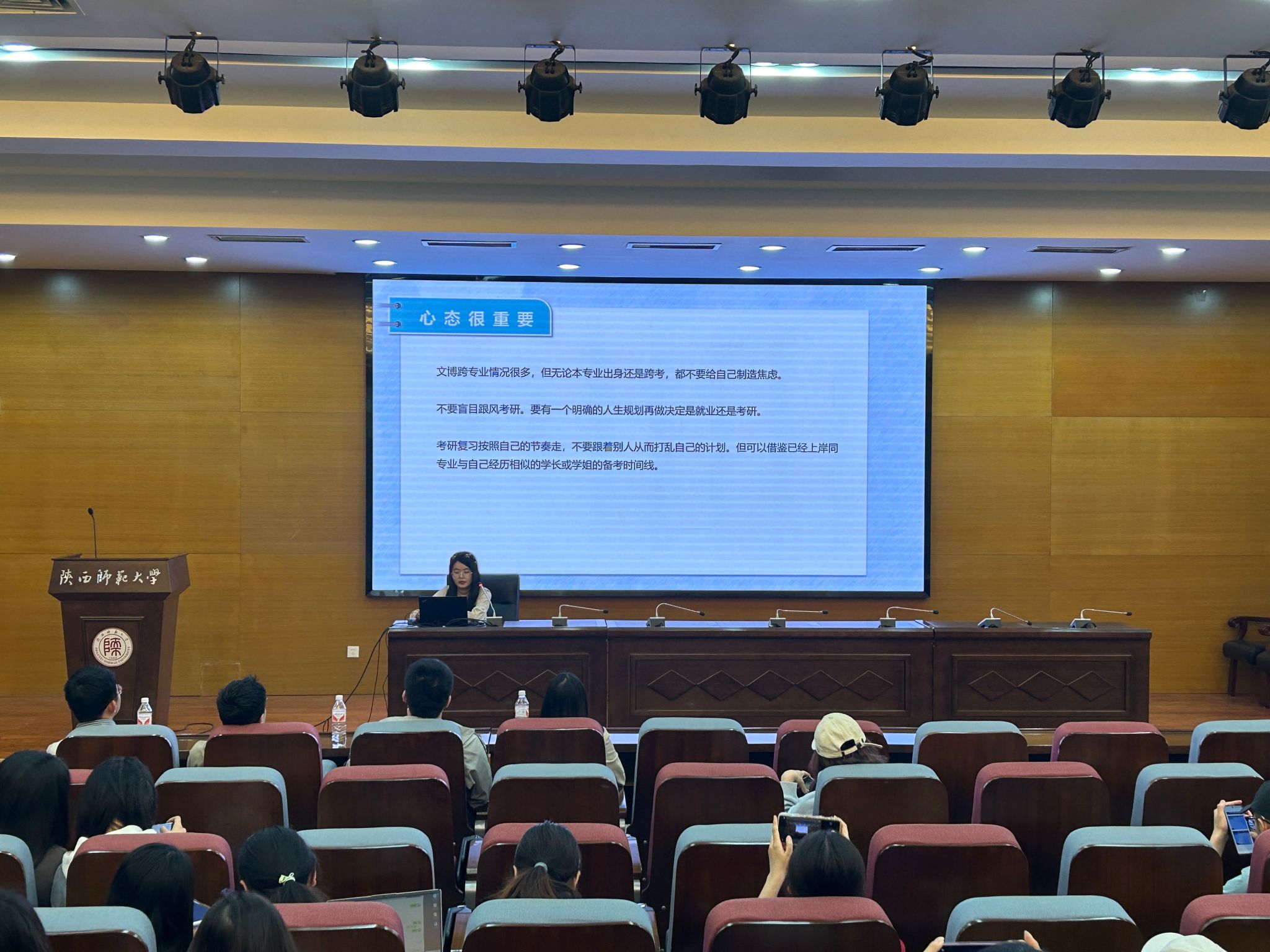 我院2010届院友、西安市曲江一中历史教研组组长孙静宜以“但行好事,前程自来”为题,结合自身的从教履历和一线经验,为同学们全面细致地介绍了真实的教师招聘流程,希望同学们树立起一名历史教师应当具备的事业心和责任感,练就扎实的历史教学基本功,以平和的心态和积极的行动去追求自己的目标,实现从找到一份好工作,到胜任一份好工作的职业发展。