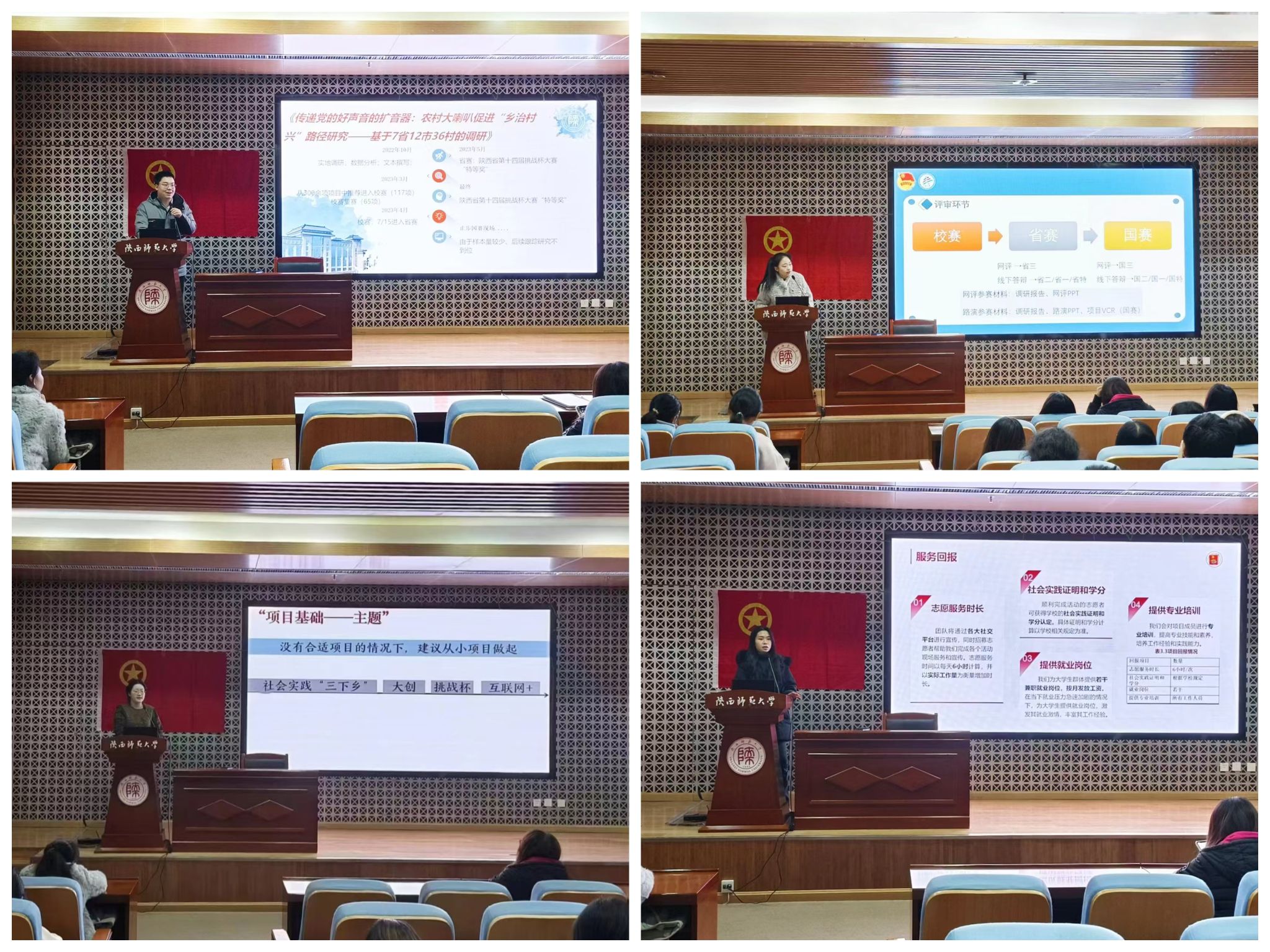 为帮助同学们深入了解“挑战杯”比赛的相关知识,威廉williamhill体育于12月7日晚以“敢挑会创,筑梦未来”为主题,举办了第三十七期“文汇新声”活动。本次活动邀请研究生闫珮,本科生夏秋彤、叶思童、王恺为同学们分享参与“挑战杯”等比赛的宝贵经验。