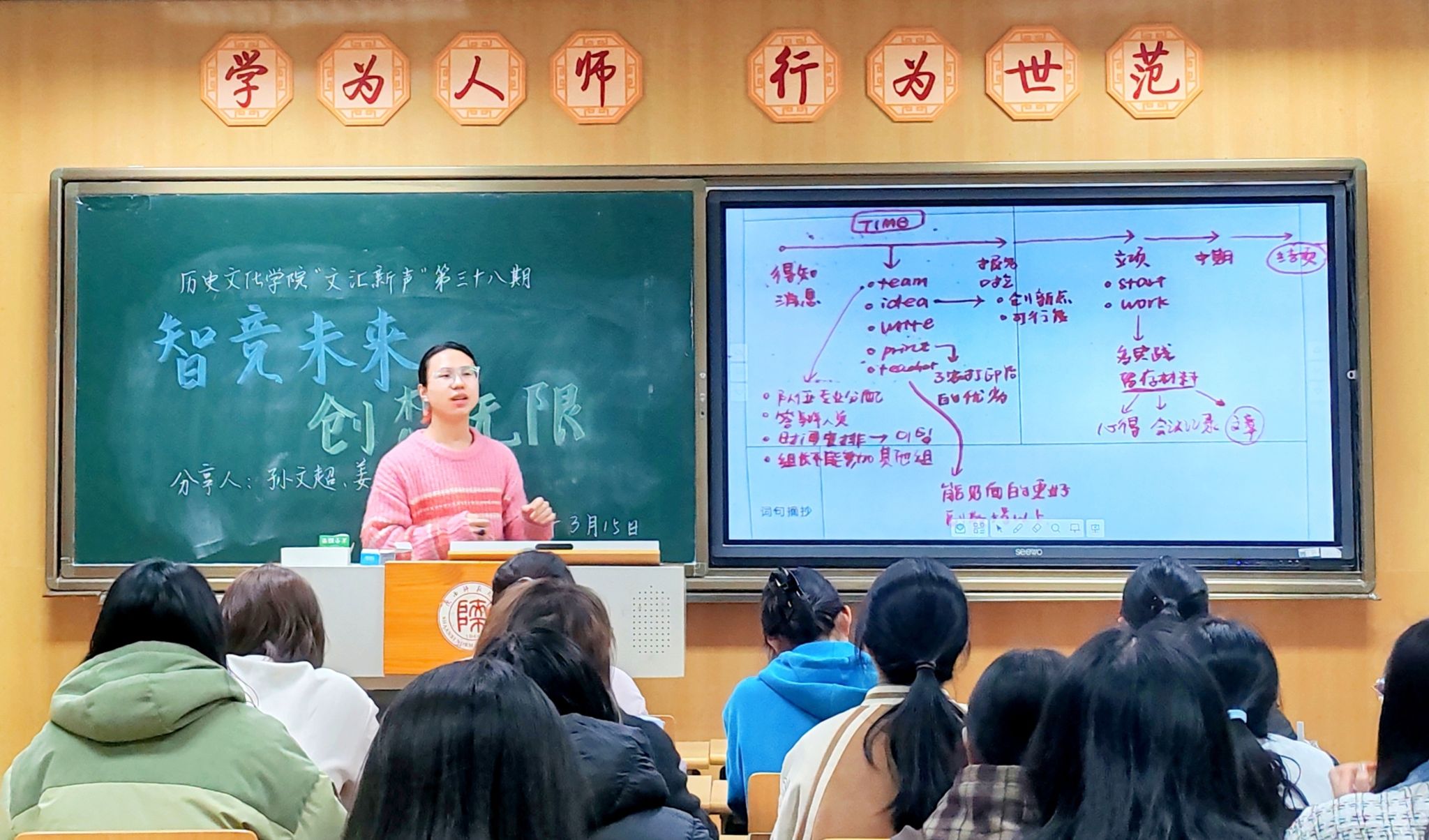 活动伊始,孙文超以自身参赛经历为切入点,向同学们系统介绍了活动流程,提倡大家以日常生活实践为基础挖掘创新点。