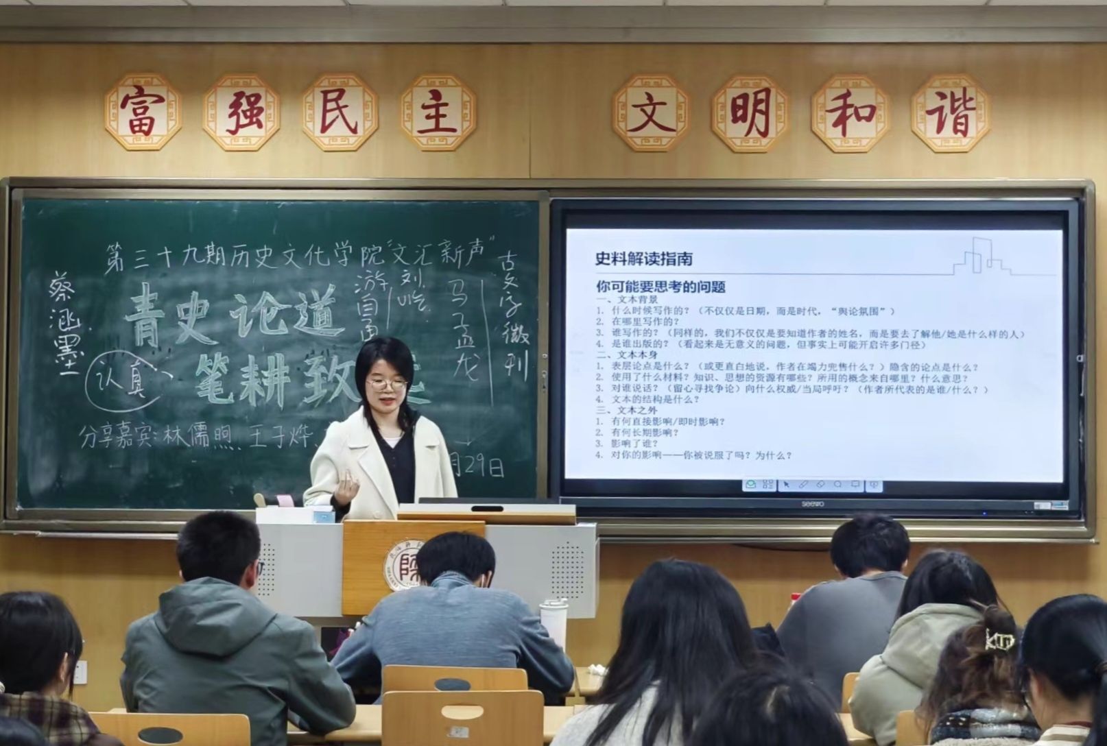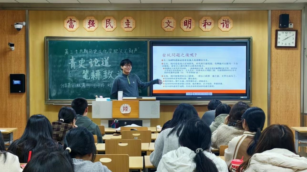 随后,王子烨从写作实践出发,强调论文写作需扎根于对原始史料的深度阅读,并鼓励同学们积极参与学术论坛,在交流中突破研究瓶颈。