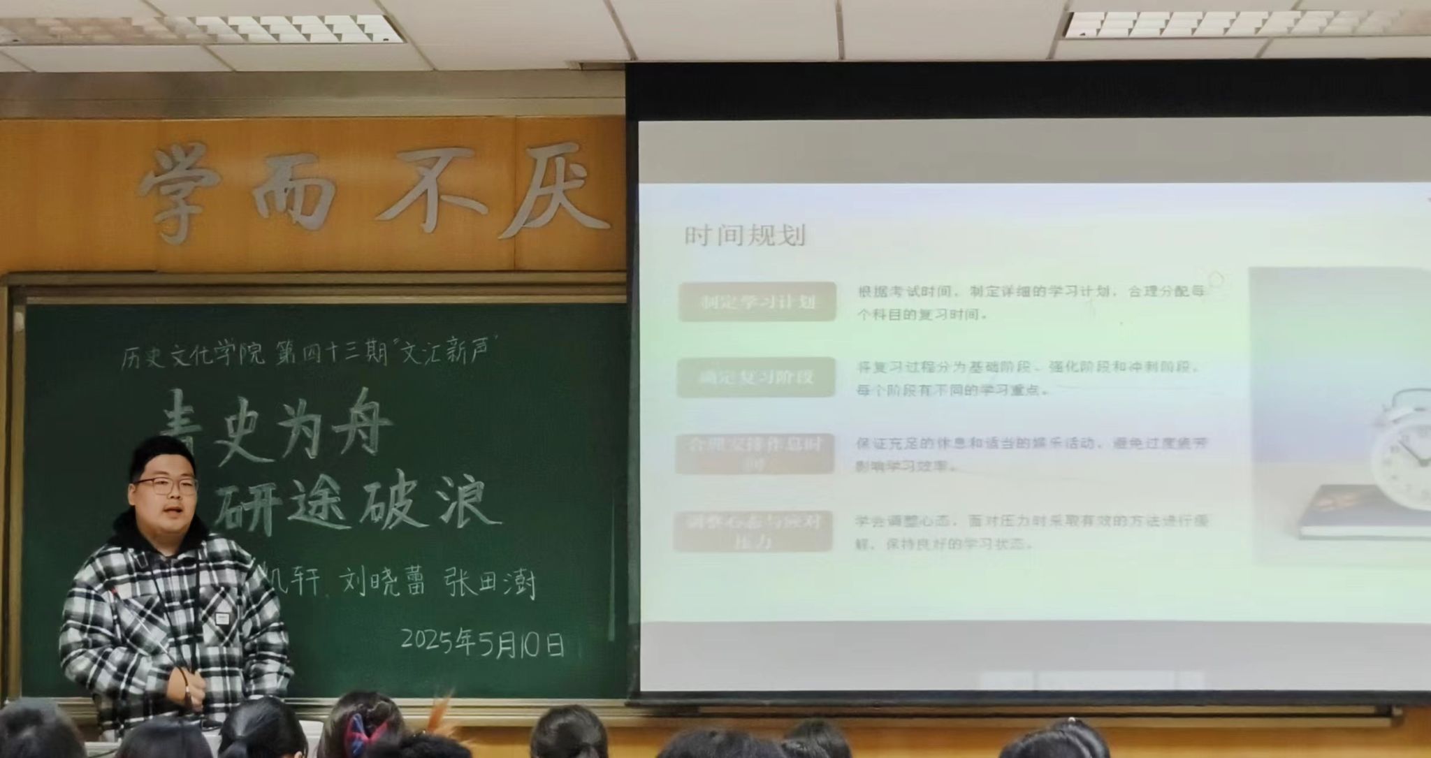 本次“文汇新声”活动助力同学们明确中国史、世界史专业的考研目标,掌握科学备考方法,为逐梦研途奠定坚实基础。