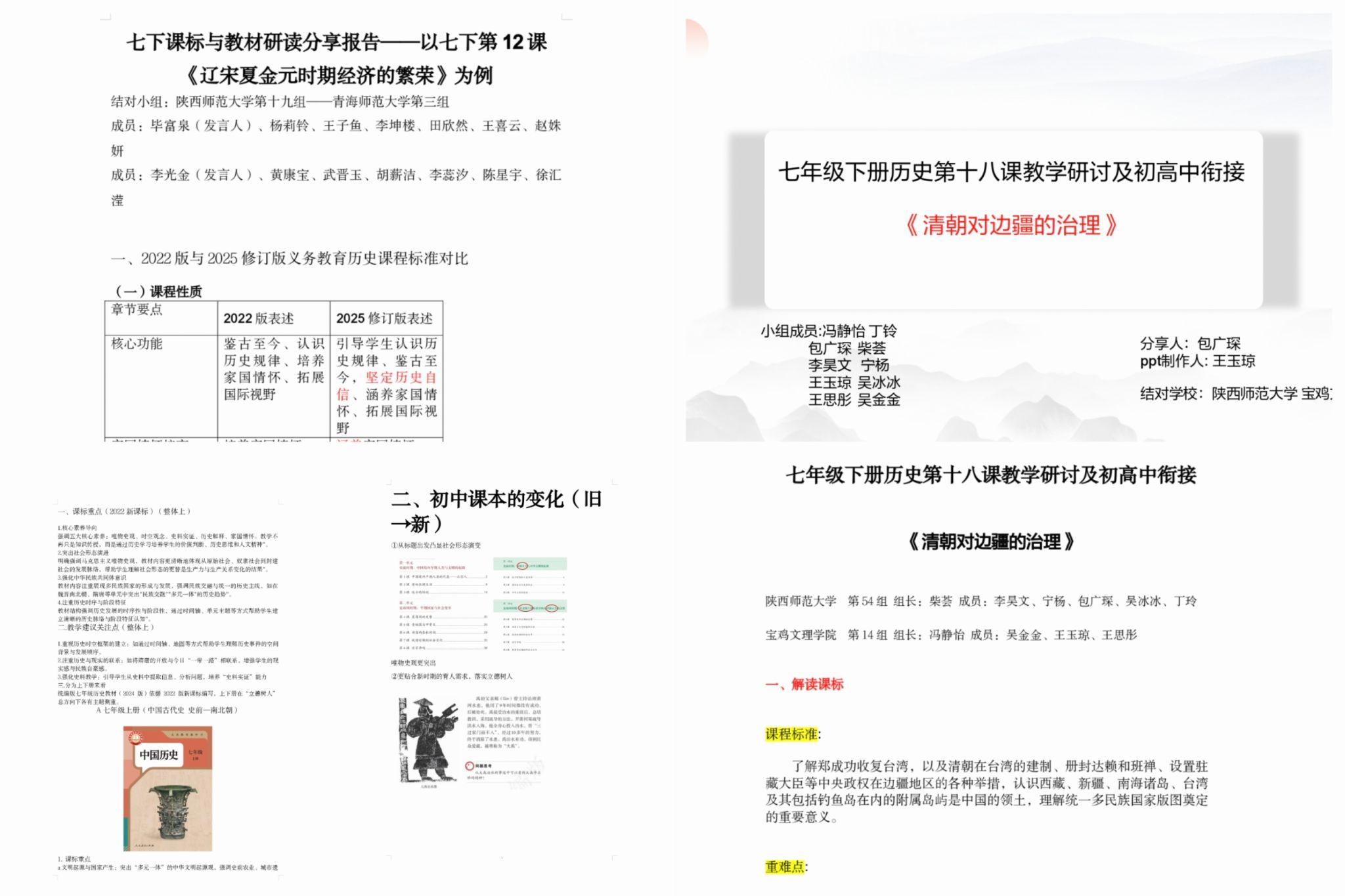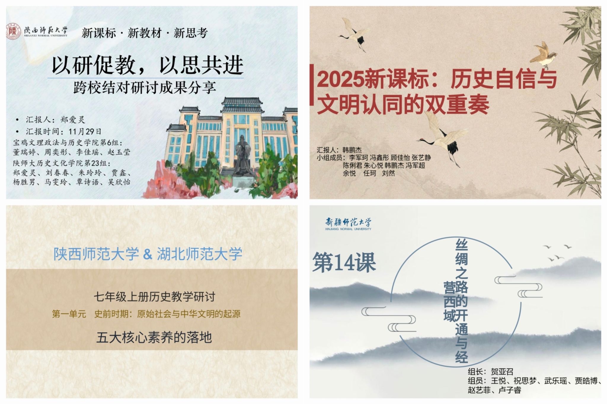 2025年11月30日,第四届历史学师范生综合能力提升沙龙第一次校际月度研讨活动顺利举行。本次活动以“七年级历史教材与课程标准解读”为主题,通过跨校交流与互动评议,深化师范生对教材内容的理解,共同探索教学实践路径。 经过自主报名与初步筛选,最终由陕西师范大学、新疆师范大学、宝鸡文理学院、湖北师范大学学生结对组成的七个小组进行了分享展示。同学们围绕中学历史教学展开多维度探讨:在课程标准层面,对比新旧版本,阐释新版课标的时代进步性;在教材分析方面,以经济史为例,说明新教材在唯物史观等方面的具体变化;在教学设计上,运用史料教学、讲述与讨论相结合等方式,进行了完整的课程设计展示。 小组互评环节中,点评同学紧扣历史课程标准,从教学目标、内容组织、教学方法等角度出发,既肯定各小组在史实呈现、思维培养方面的亮点,也对目标设定、课堂互动等方面的不足提出建议,为教学优化提供了明确方向。 本次研讨为历史师范生搭建了高质量的交流平台,不仅推动了教学方法的创新与实践反思,也促进了高校间的深度互动,为培养适应未来教育发展的卓越历史教师奠定了扎实基础。