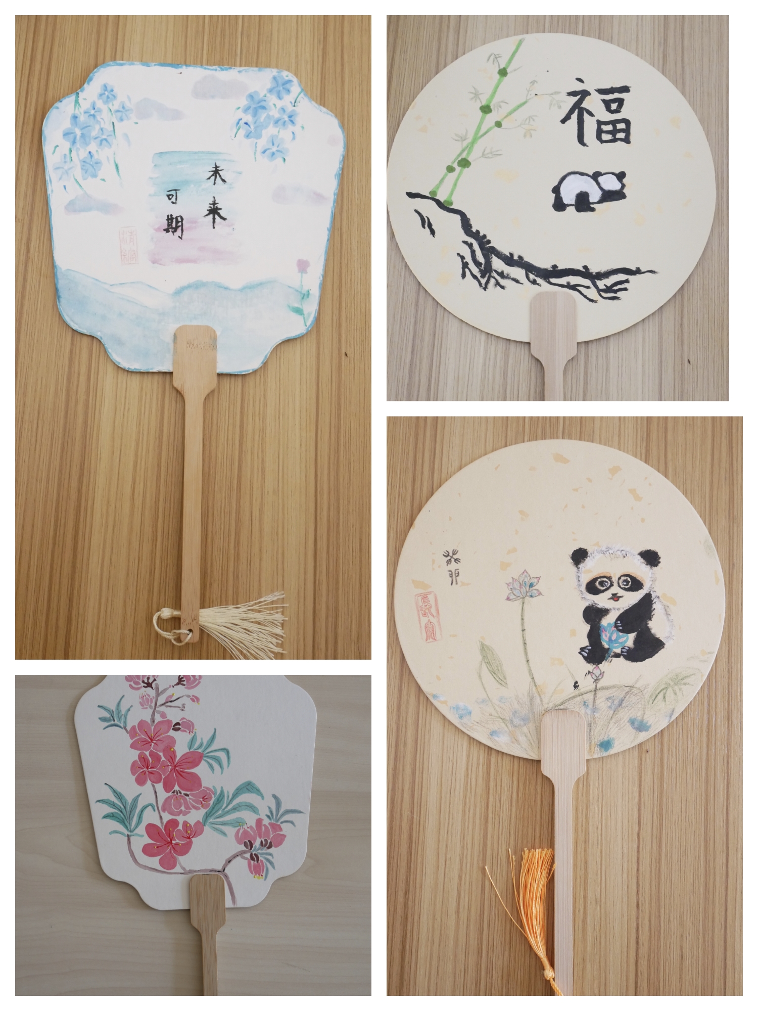 从设计图案到绘制扇面,同学们在绘画的过程中施展自己的奇思妙想,完成了一把把或清新淡雅、或浓墨重彩的团扇。一张张开心的笑脸和一幅幅精美的作品定格在镜头下,辅导站氛围轻松而热烈。活动圆满结束后,同学们将自己的作品带回留作纪念