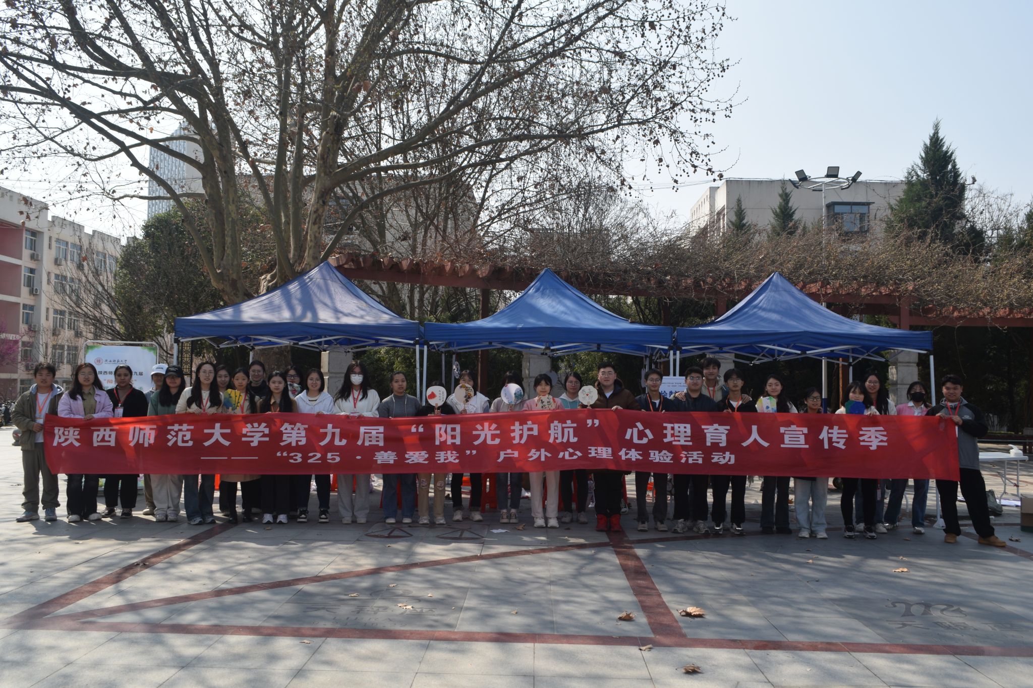 3月25日,陕西师范大学第九届“阳光护航”心理育人宣传季活动全面启动,由党委学生工作部(学生处)、党委研究生工作部主办,威廉williamhill体育文汇听心二级心理辅导站承办的“325·善爱我”大学生心理健康主题长安校区户外心理体验活动在阳光苑广场举行。